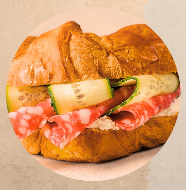 Croissant Sesame Bliss ???????????? Croissant amanteigado recheado com copa defumada, cream cheese, molho okonomi, pepino japonês e finalizado com gergelim branco torrado.