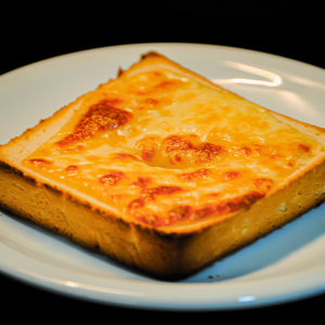 Shokupan Toast Melt ?????????? Torrada feita com uma fatia de pão especial estilo japonês (Shokupan) feito artesanalmente. Servido com manteiga, molho Tokyo, creme de ricota e queijo tostado.