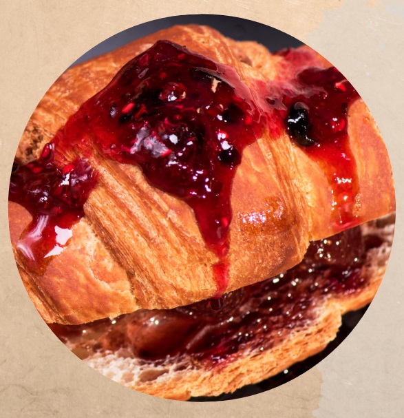 Croissant Ichigo Jam ???????????? Croissant amanteigado, recheado com um irresistível e doce ichigo jam (geleia de morango).