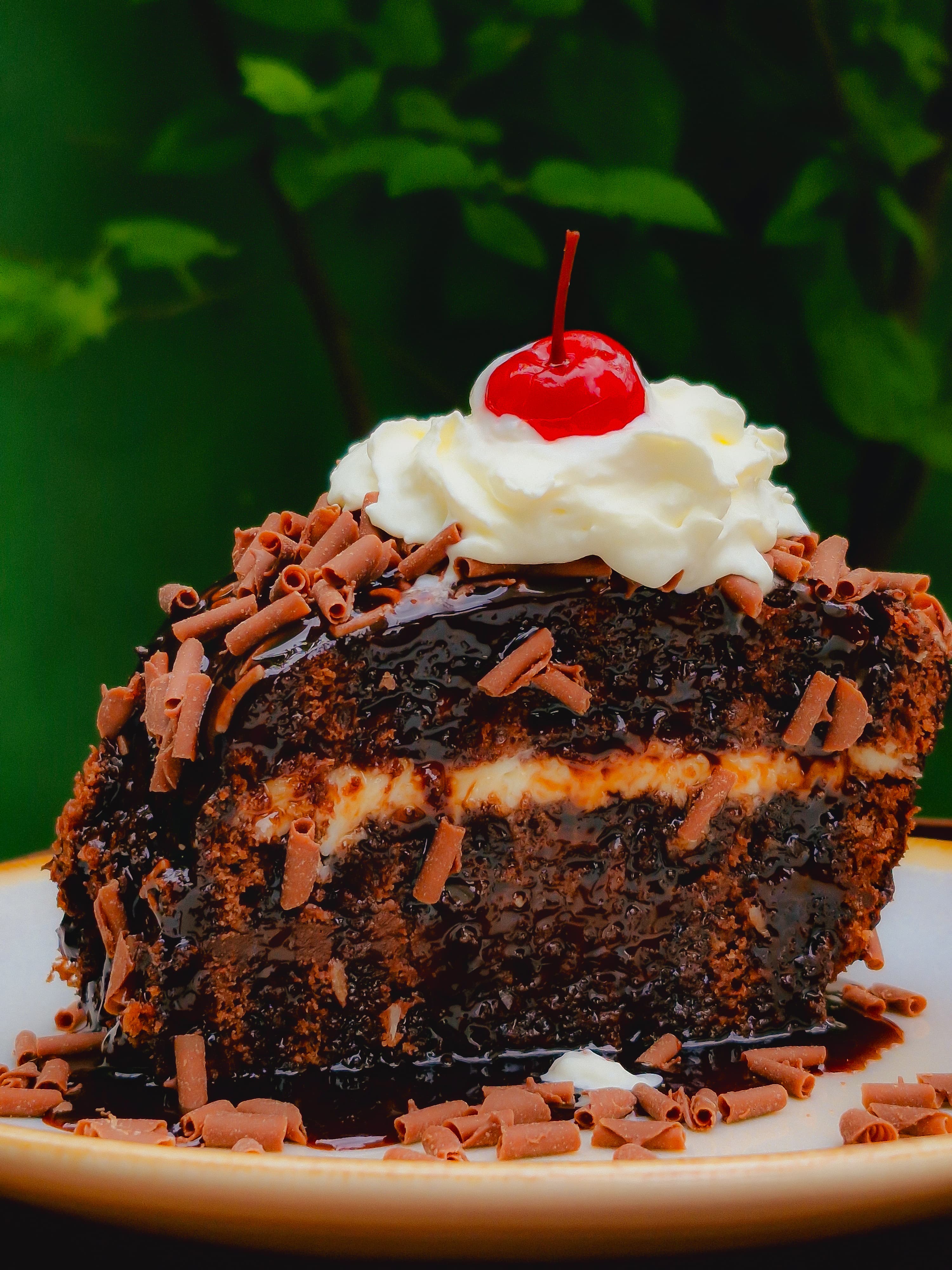 Sugoi Choco Cake ????????? Bolo de chocolate intenso, recheado com creme de avelã e ganache 70% cacau, com um toque leve de calda de chocolate, chantilly e cacau em pó.