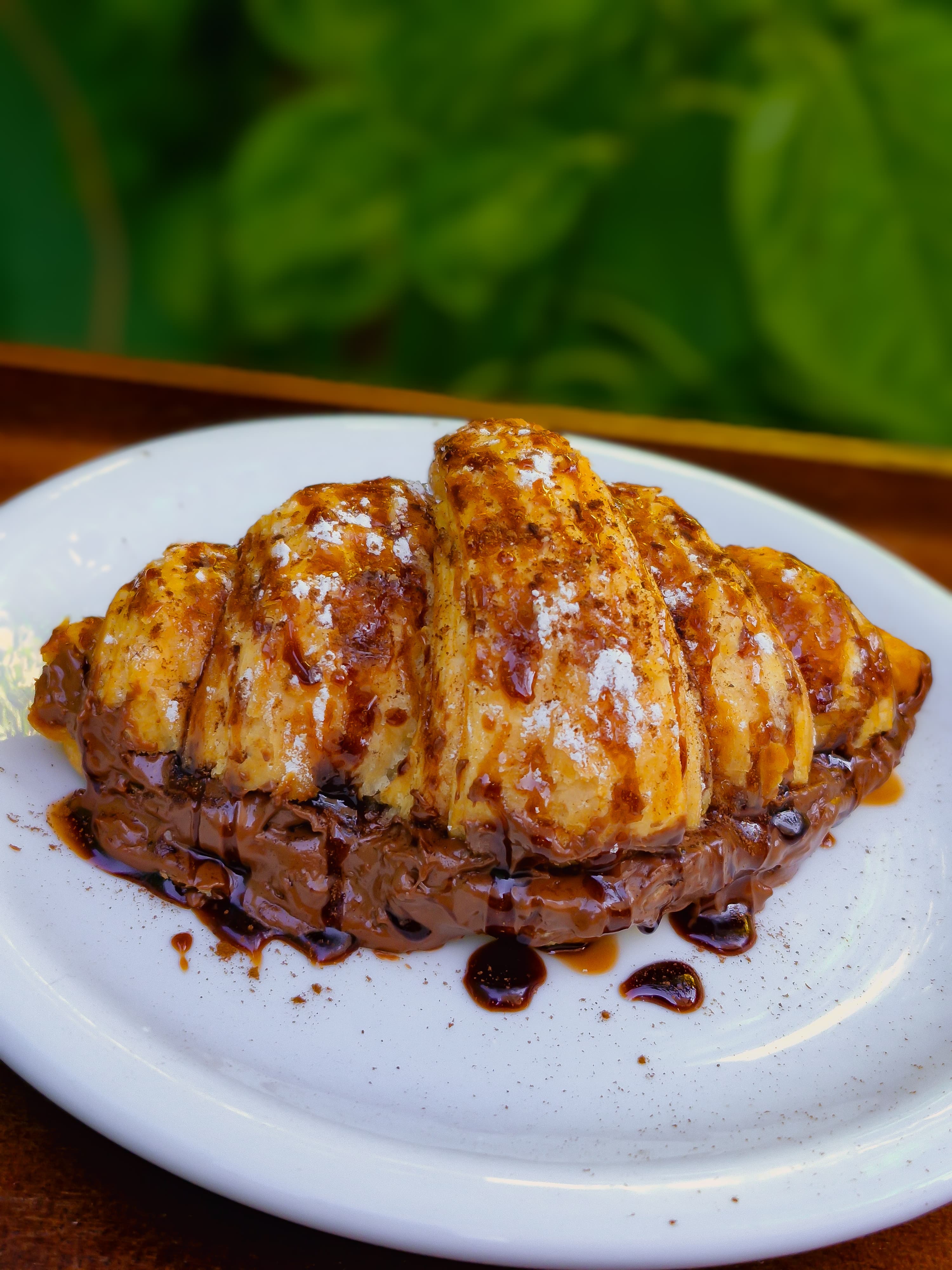 Croissant Avelã no Shiawase ???????????????? Croissant leve e crocante, recheado com um rico e aveludado creme de avelã e finalizado com calda de chocolate.