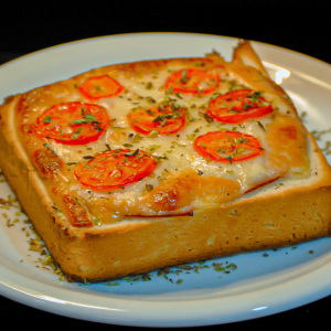 Shokupan Tokyo Toast ????????? Torrada elaborada com pão especial estilo japonês (Shokupan), feito artesanalmente. Servido com queijo, presunto, tomate grape fresco e um toque de orégano.