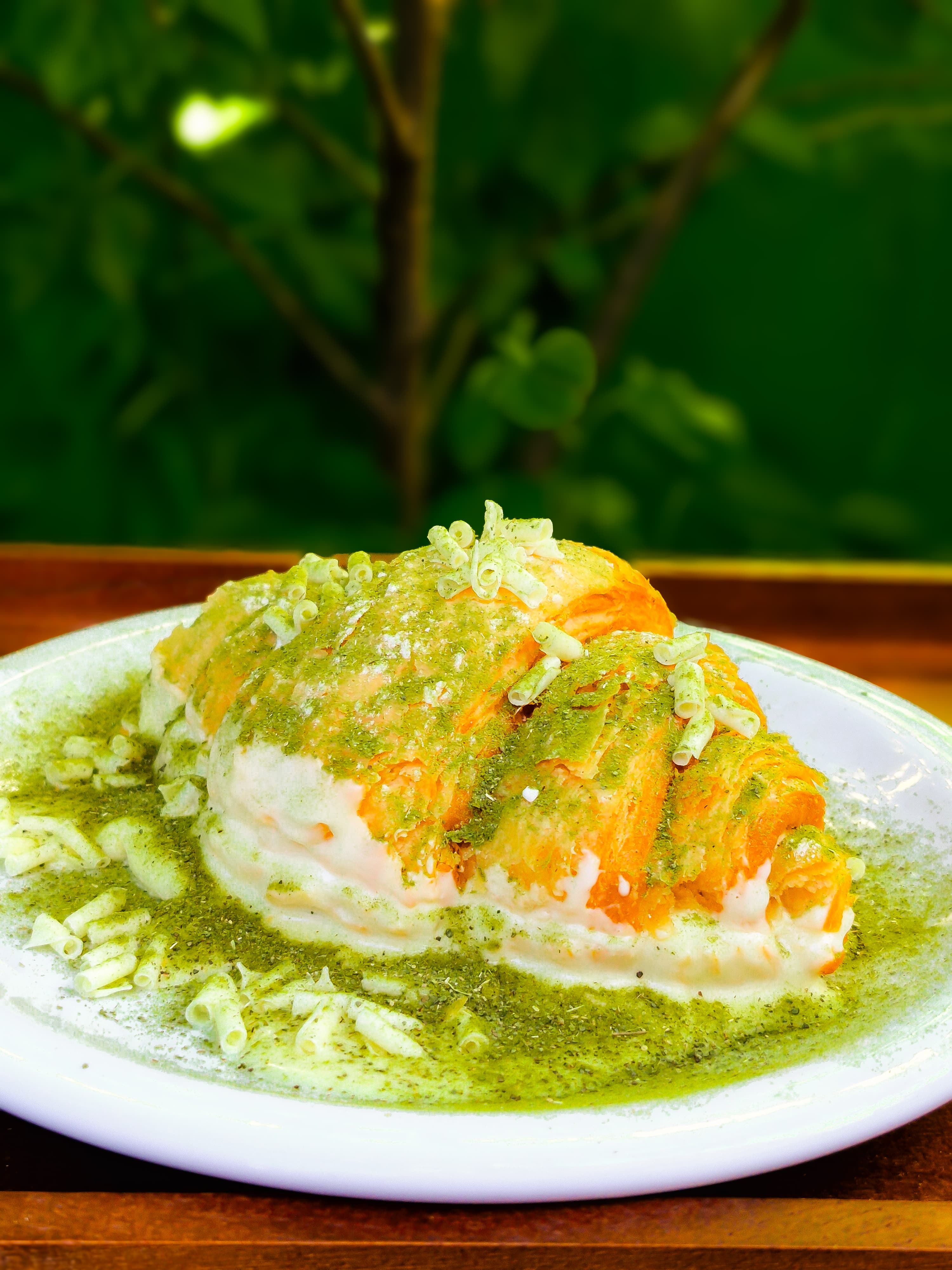 Croissant Matcha ???????? Croissant recheado com ganache de chocolate branco incorporado com matcha e raspas de chocolate branco belga. Finalizado com matcha em pó.